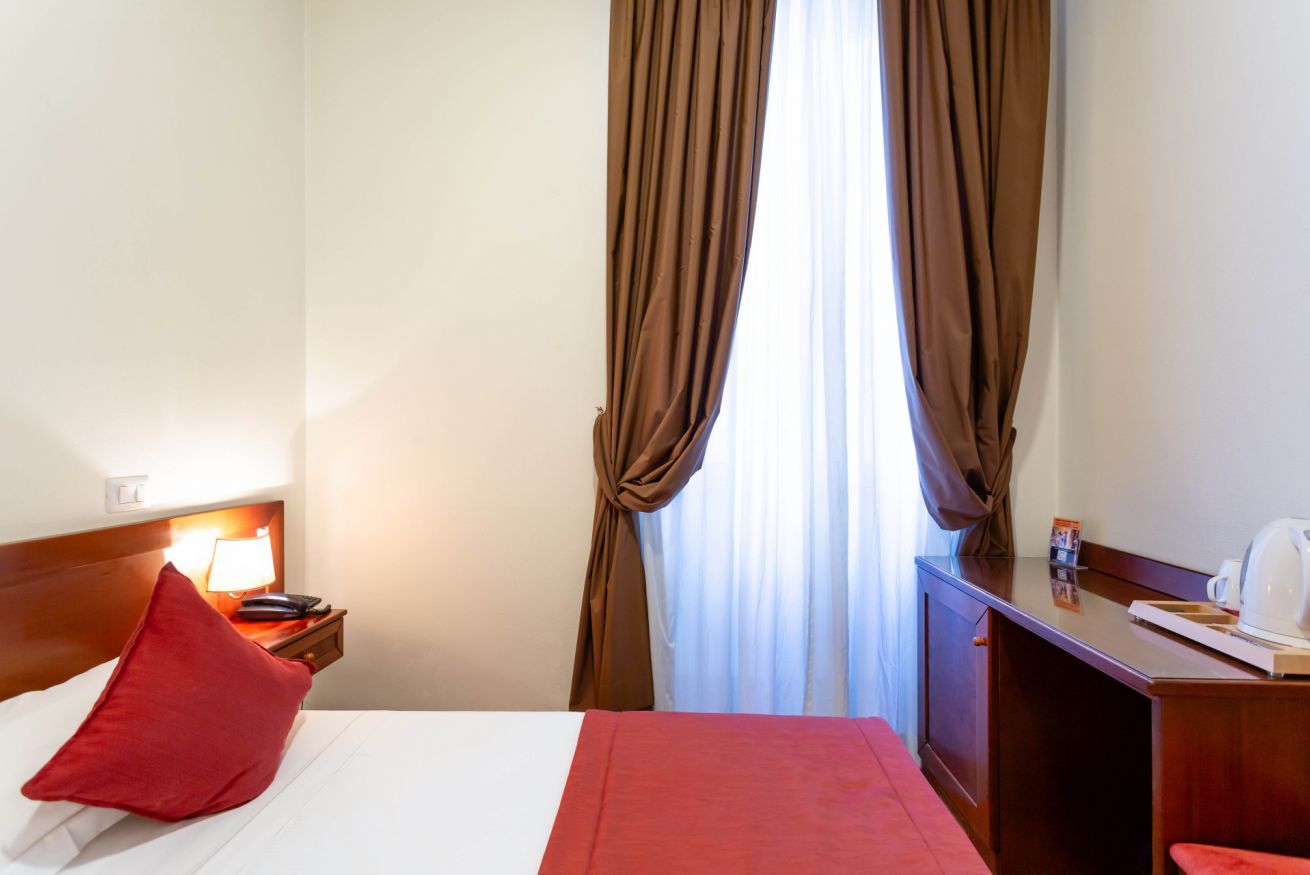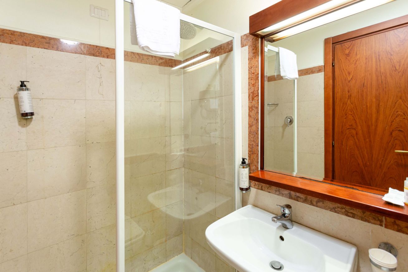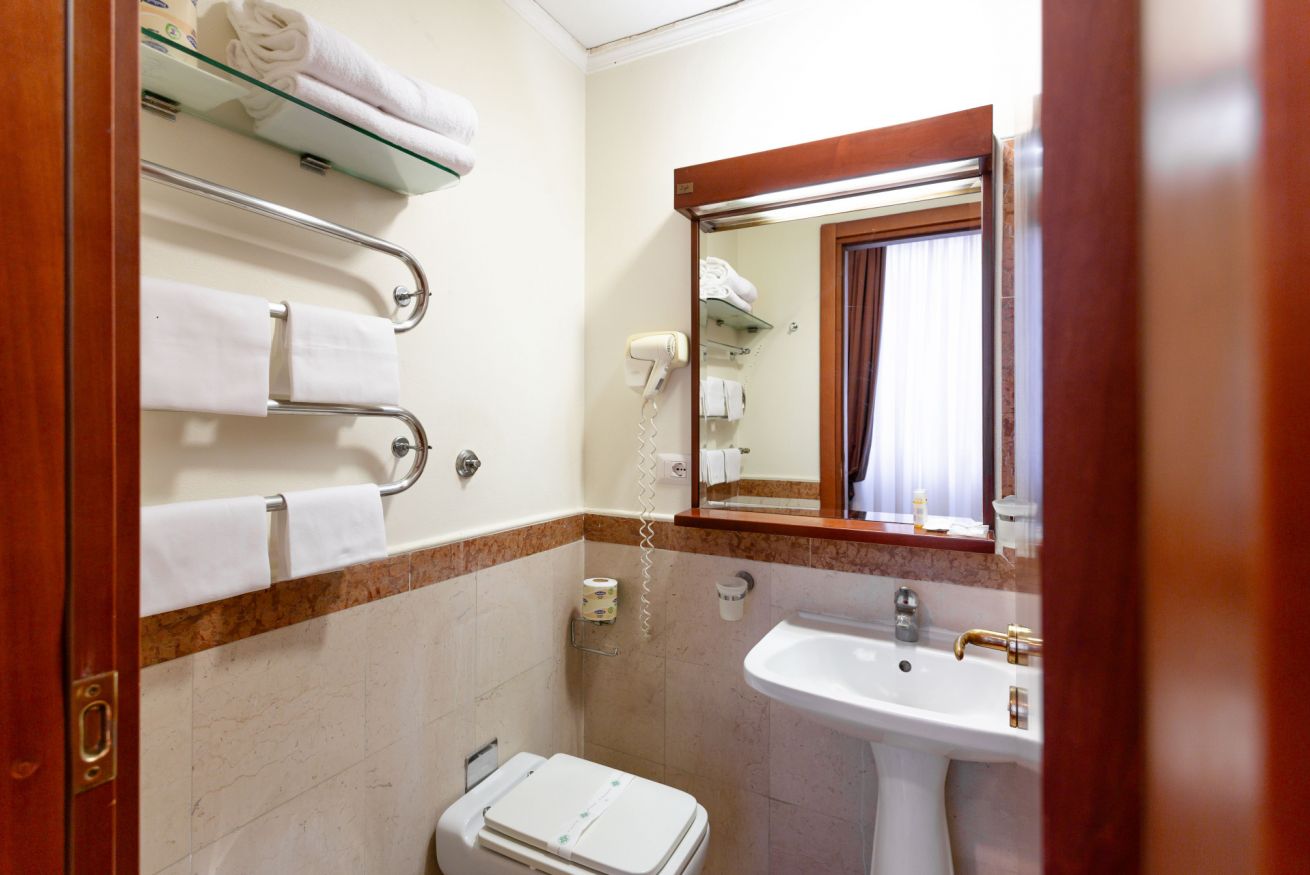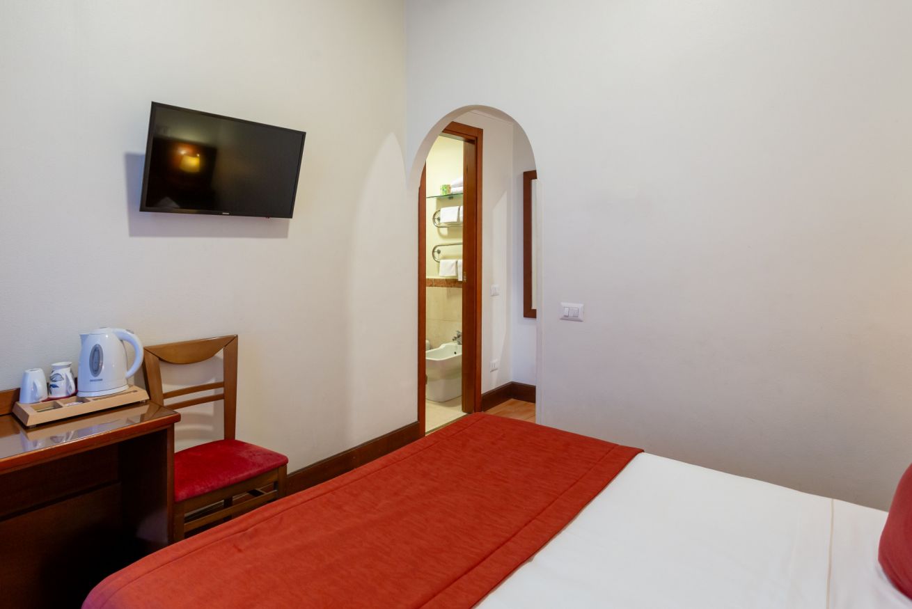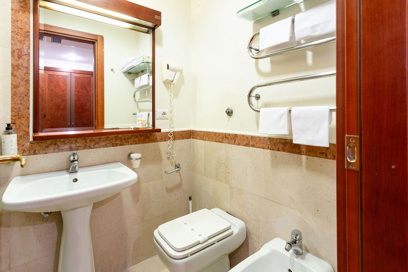 Camera per due persone con letto matrimoniale e bagno privato. Dotata di minibar, cassaforte e aria condizionata/riscaldamento.